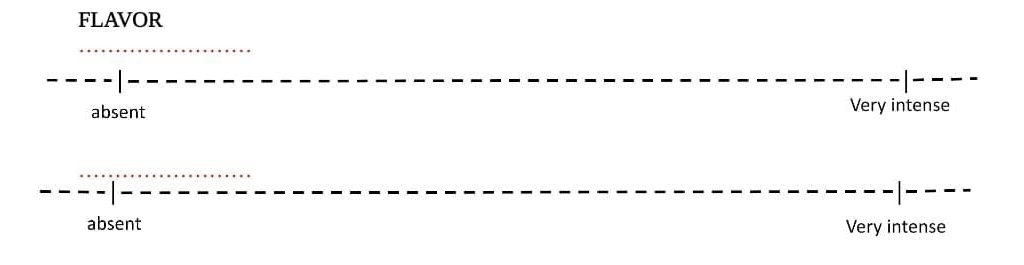 Pada proses standarisasi sensoris produk ini digunakan skala numerik 1–5. Melalui skala ini, atribut seperti kenampakan (appearance), aroma, rasa, flavor, dan mouthfeel dapat dinilai berdasarkan tingkat intensitas berikut: