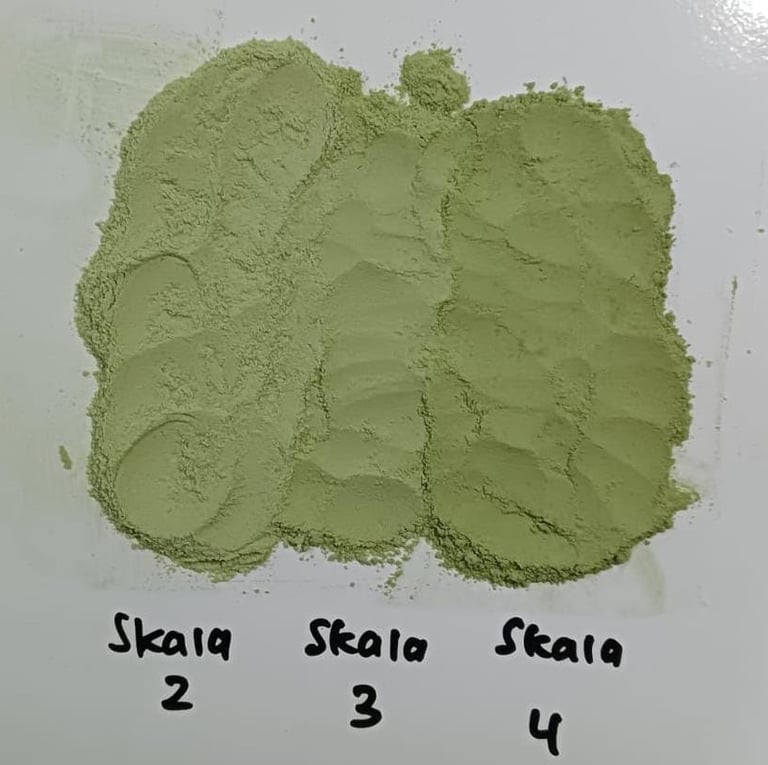 Dari pembandingan ini, kami mengetahui karakter produk mana yang paling mewakili sebagai standar ideal. Karakter ini kemudian dijadikan titik tengah untuk menentukan skala penilaian. Variasi karakter yang lebih rendah maupun lebih tinggi dari standar ini kemudian dipakai sebagai acuan untuk menentukan rentang skala penilaian, sehingga setiap tingkat penilaian memiliki gambaran yang jelas dan realistis.